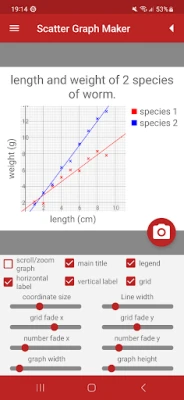 • Save scatter graphs to the phone's memory to use in your own work.